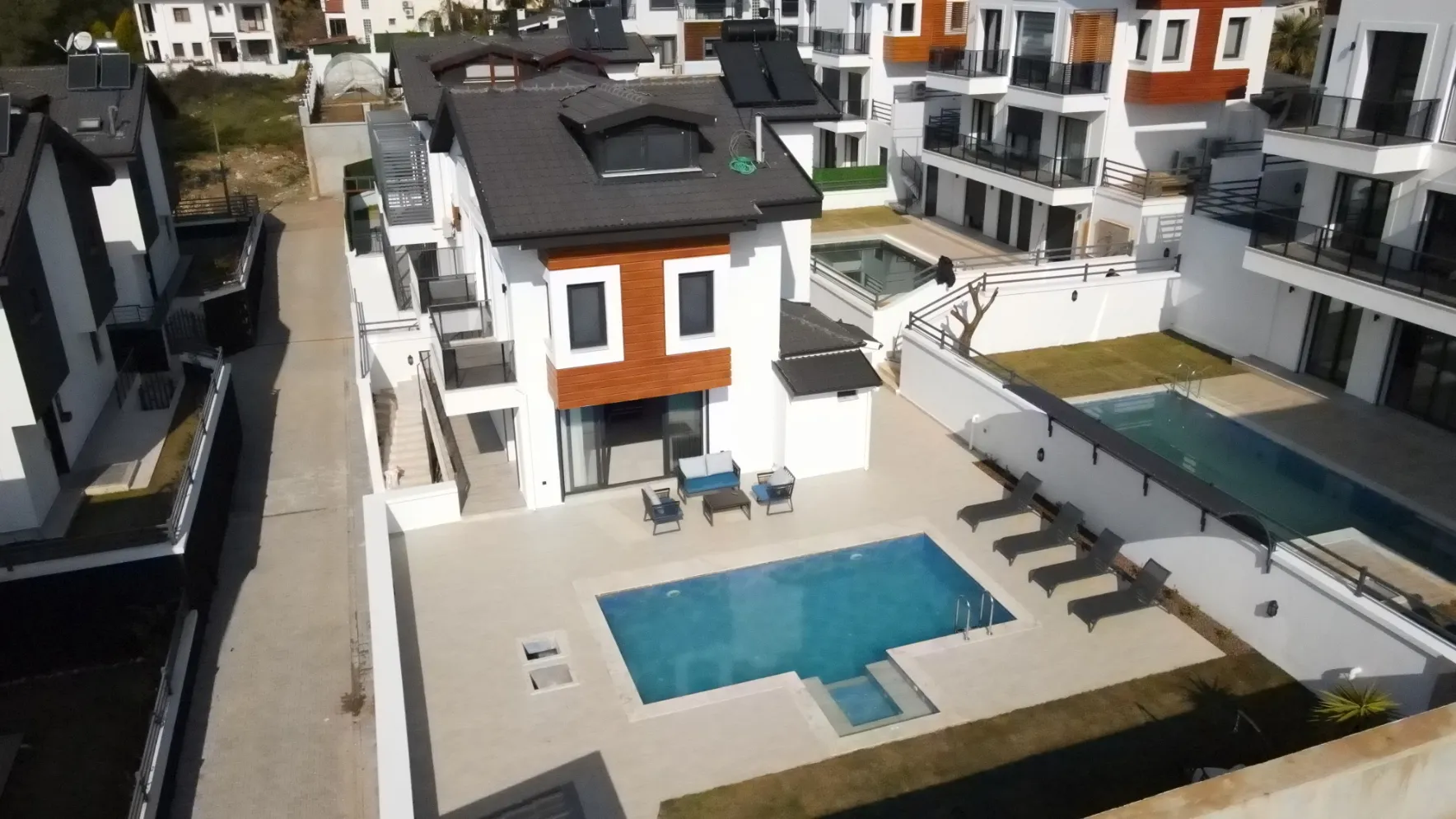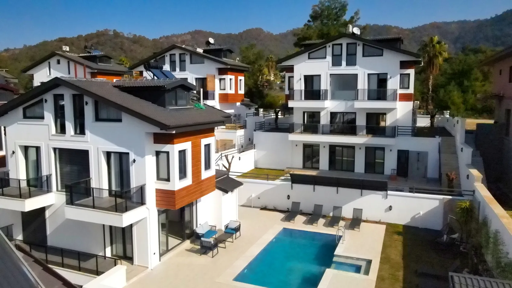 Fethiye’nin gözde yaşam bölgesi Çiftlik Mahallesi’nde, yeşilin ve mavinin her tonuna hakim, birbirinden özel 9 adet villadan oluşan bir kompleks bulunmaktadır. Müstakil yaşamın konforunu şehre yakın, ancak gürültü ve kargaşadan uzak bir lokasyonda sunan bu özel villalar, konforlu bir yaşam alanı sağlamaktadır.