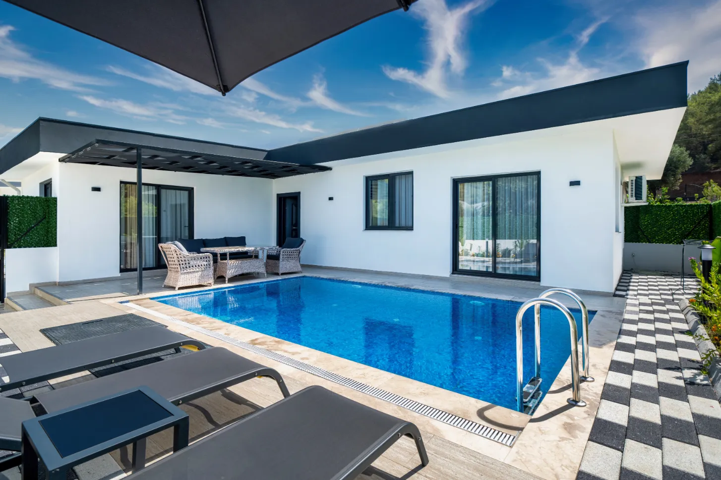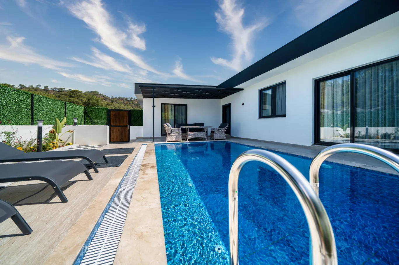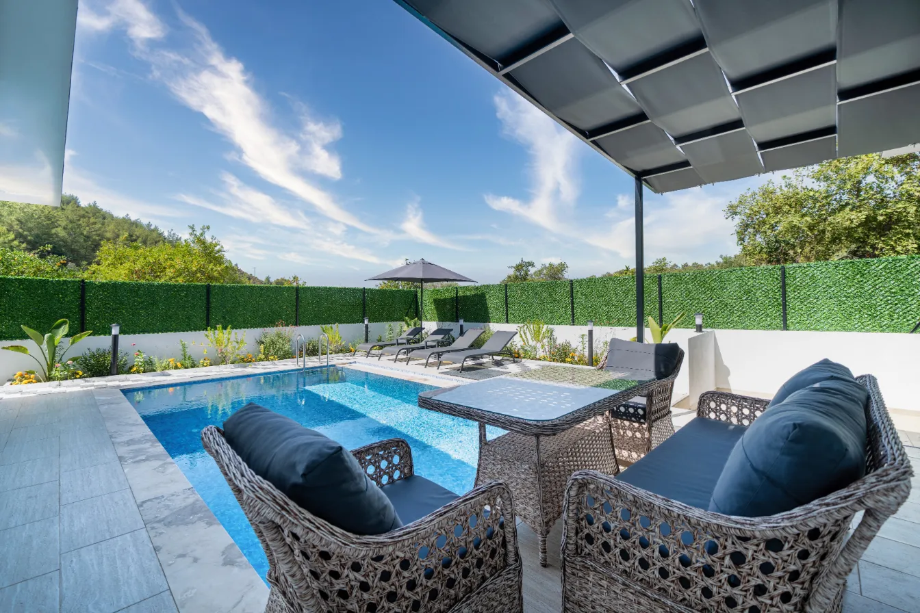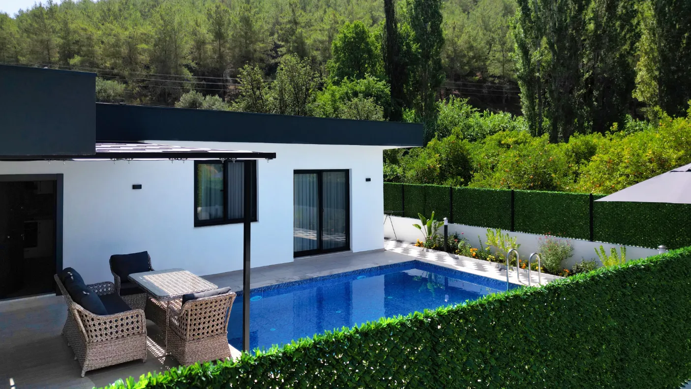 Fethiye’nin seçkin bölgelerinden birinde, 650 m² arsa üzerine kiralama amacıyla inşa edilmiş, özel ve korunaklı villalardan oluşan bir kompleks sunuyoruz. Bu villalar, mahremiyete önem veren misafirler için tasarlanmış olup, modern mimari ve yüksek kaliteli malzemelerle inşa edilmiştir. Doğayla iç içe, huzurlu bir ortamda konforlu bir konaklama deneyimi yaşatmak için her detay özenle planlanmıştır.